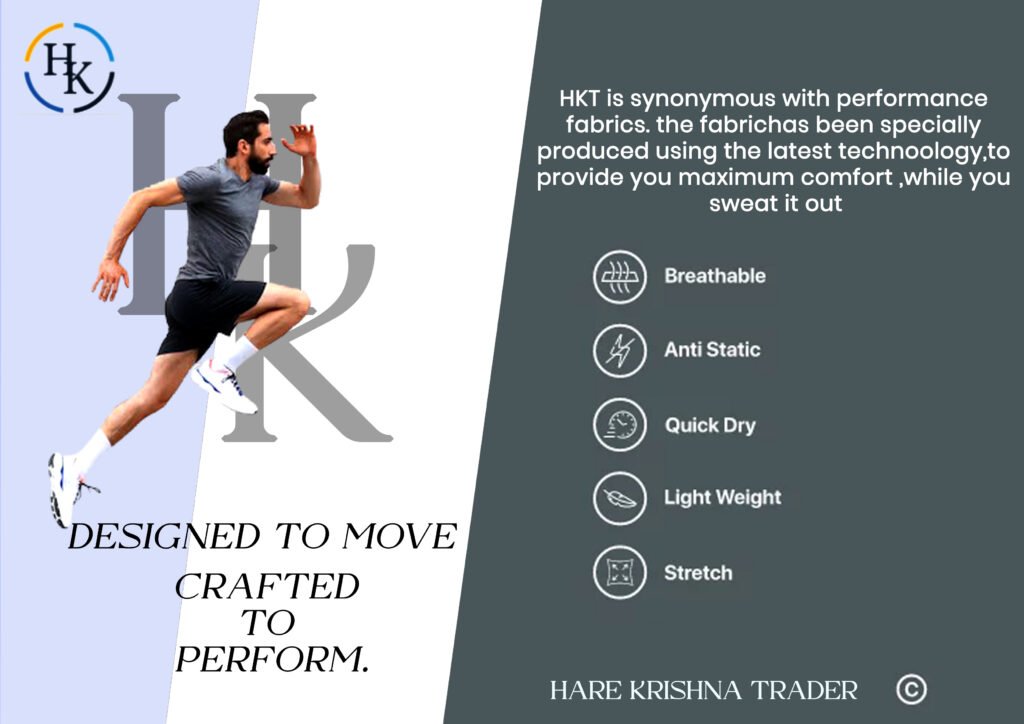 - Running → Polyester blends (lightweight, sweat-wicking)